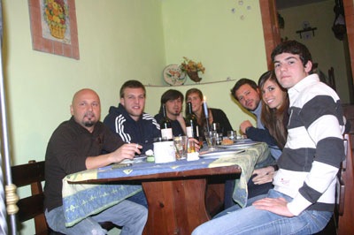 Como toda inauguracion de una casa hay que arrancarla con una cena, y la hicimos con la gente mas querida...entre ellos estan: Massimo (pelado de la izquierda), entrenador de la M19 del San Gregorio, Francesco y su Novia (los dos primeros de la derecha), quien me pasa a buscar para ir a los entrenamientos , Diego (al lado mio a la izquierda) Ivan , Mariana y yo....todos en la casita.